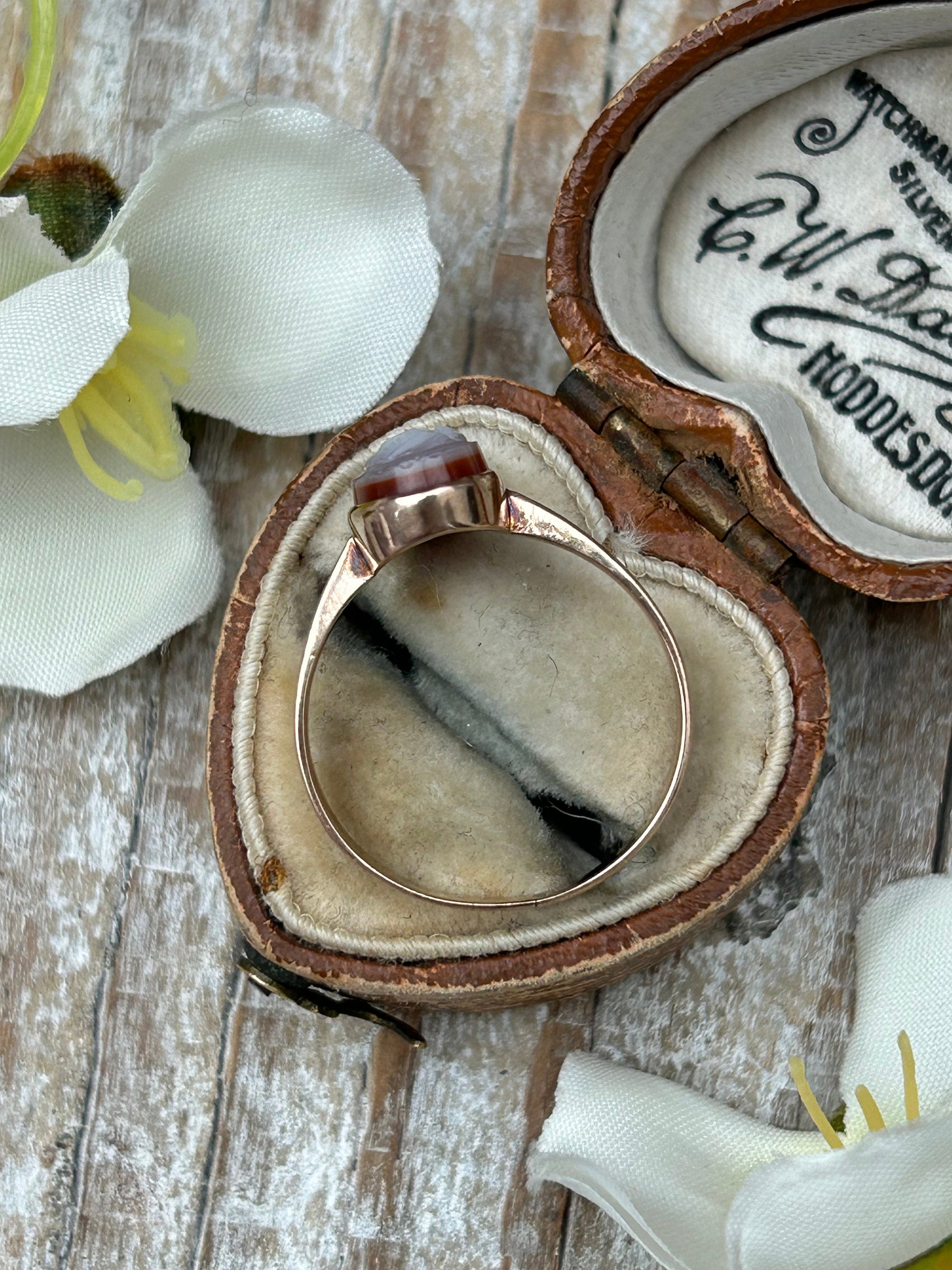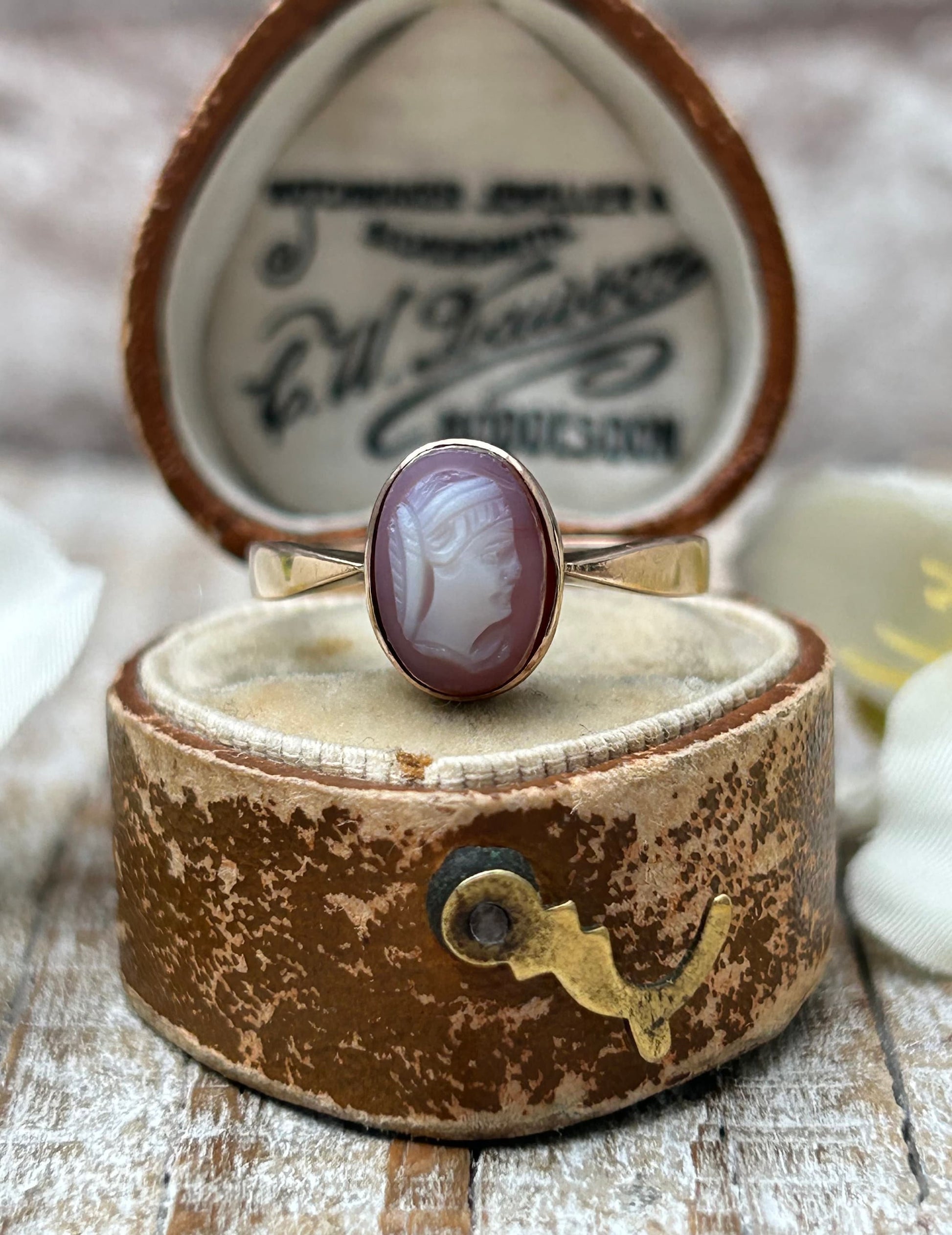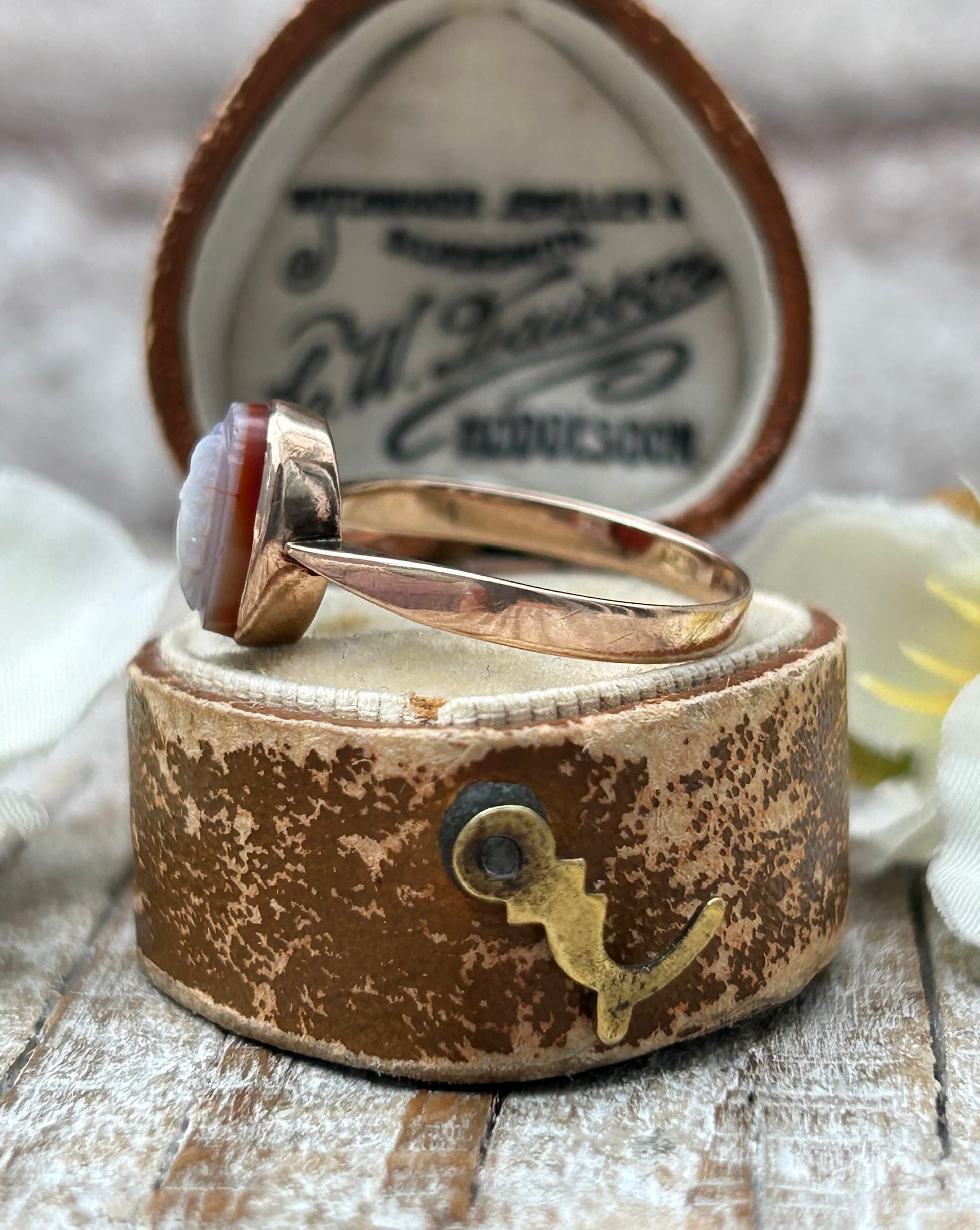 Antique Edwardian Agate Cameo Ring 9 Carat Gold