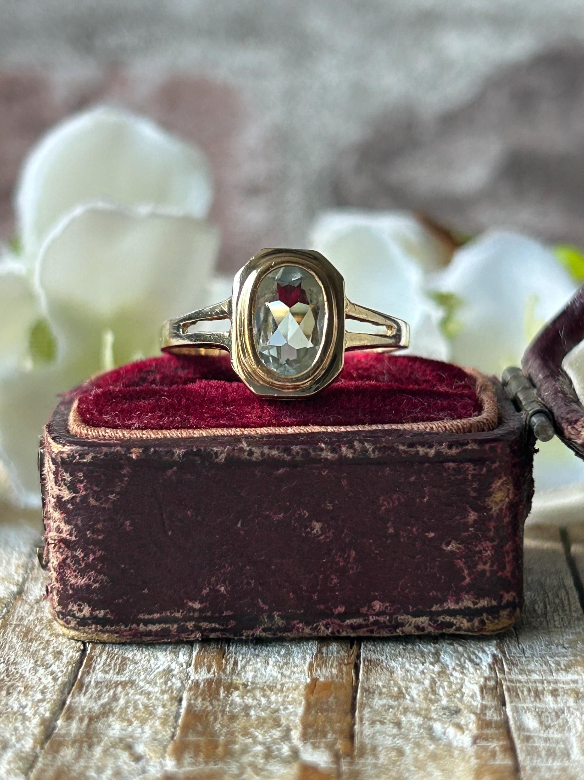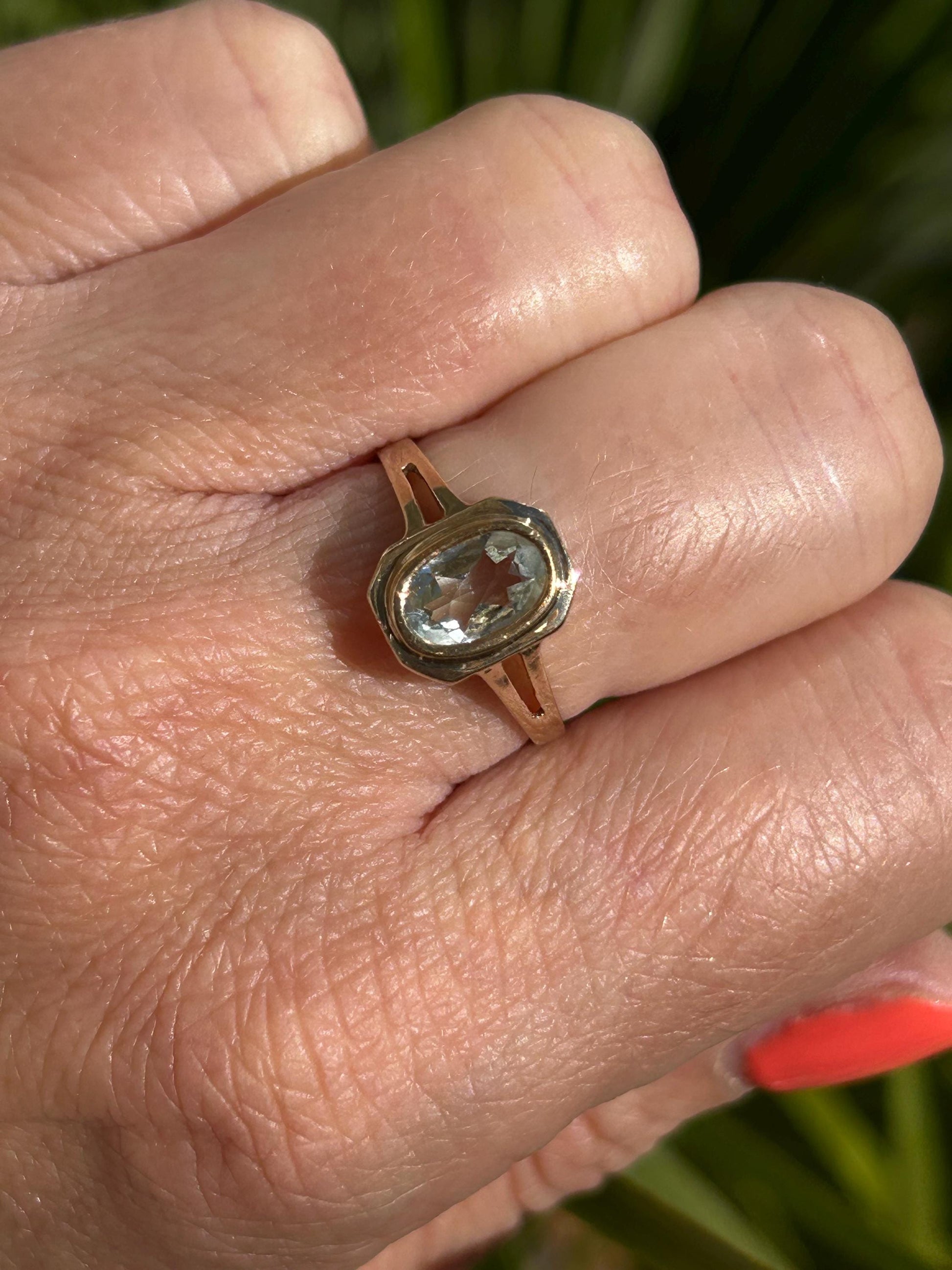 Vintage Aquamarine Solitaire Ring 9 Carat Yellow Gold 1985