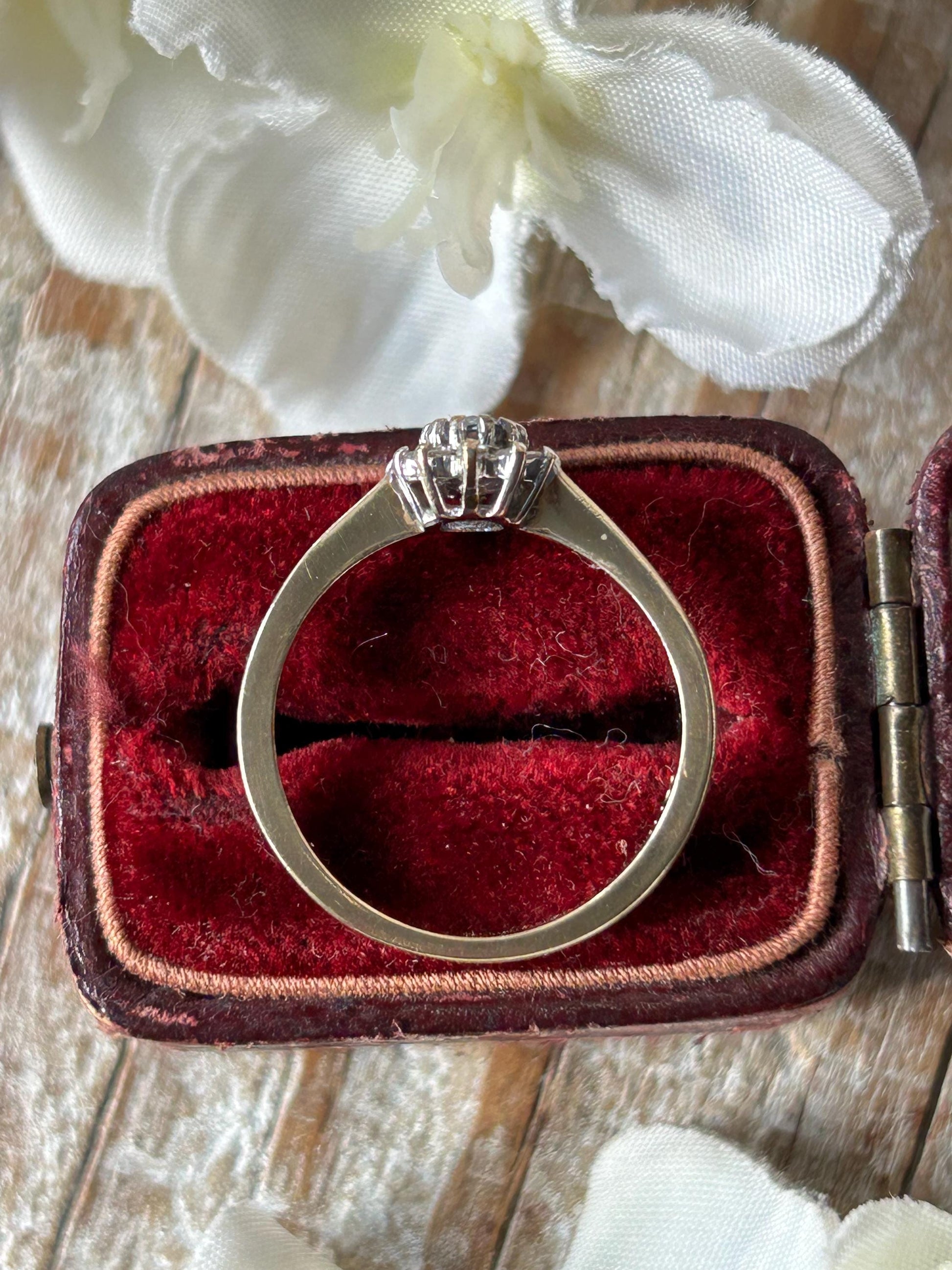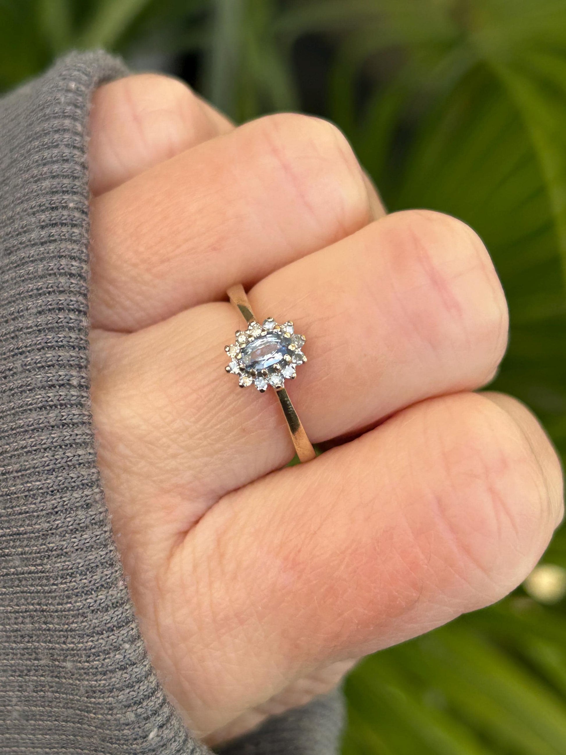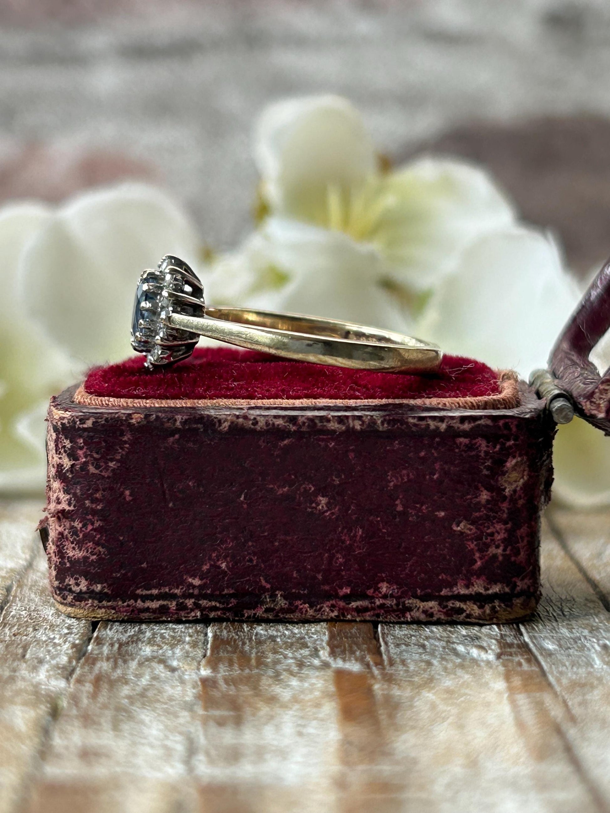Vintage Blue Sapphire and Diamond Halo Ring 9 Carat Yellow Gold