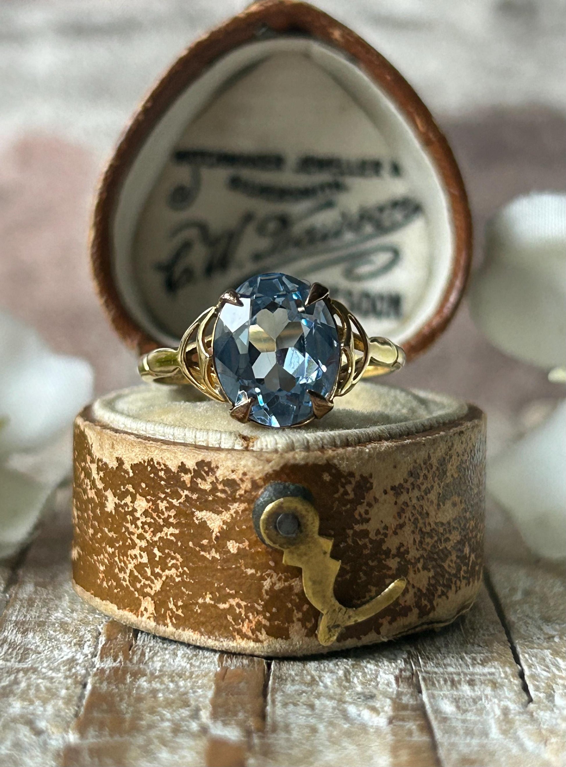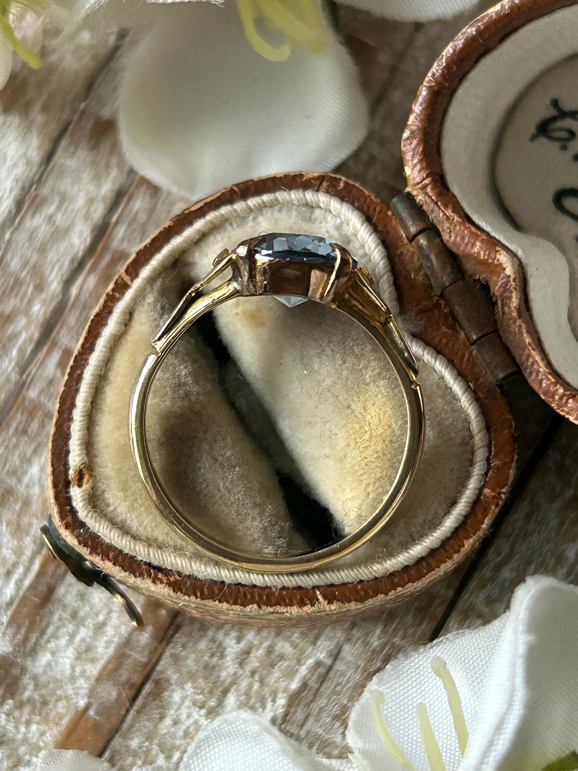 Vintage Blue Spinel Solitaire Ring 9 Carat Yellow Gold