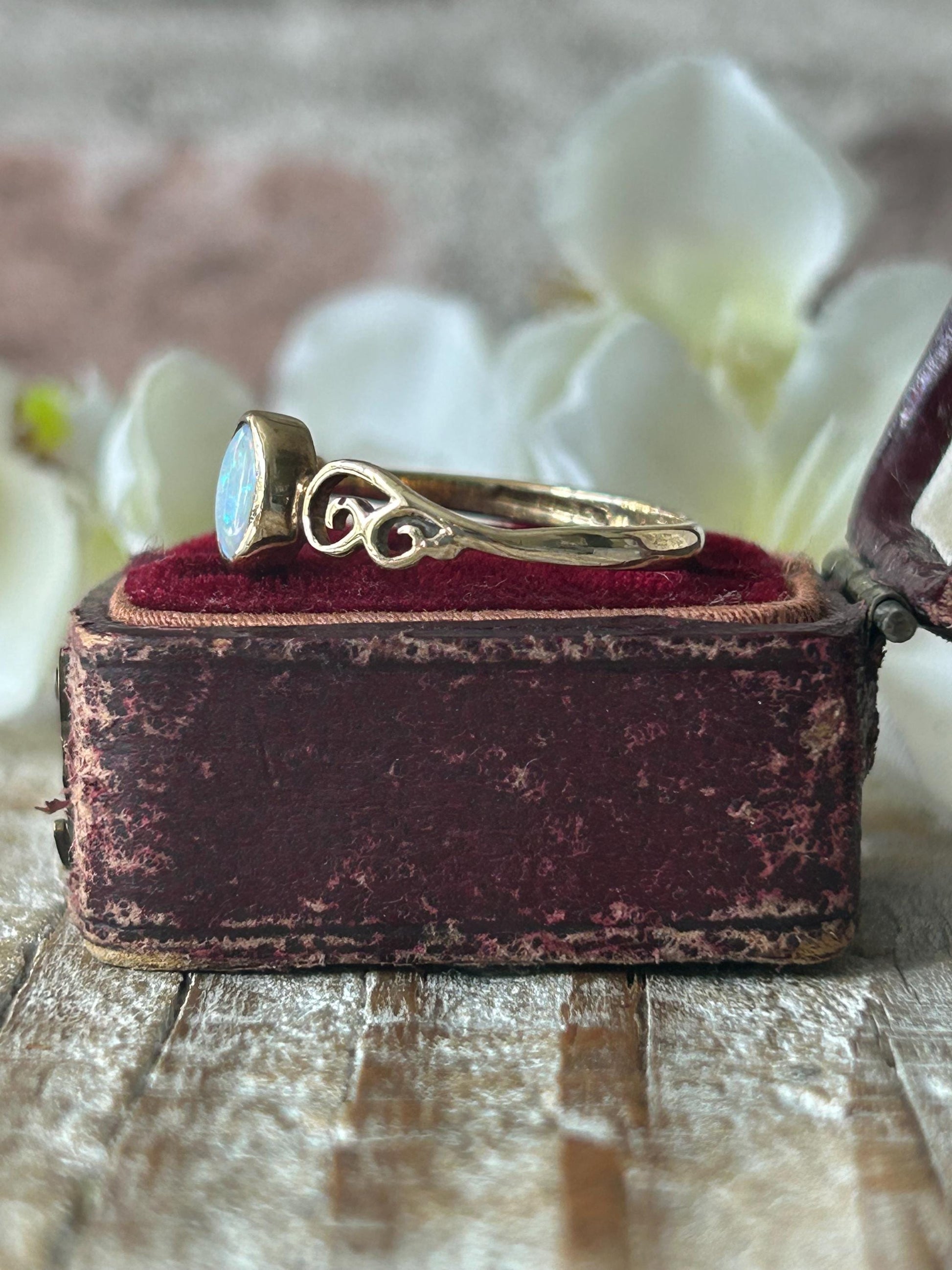 Vintage Ornate Opal Solitaire Ring 9 Carat Yellow Gold 1985