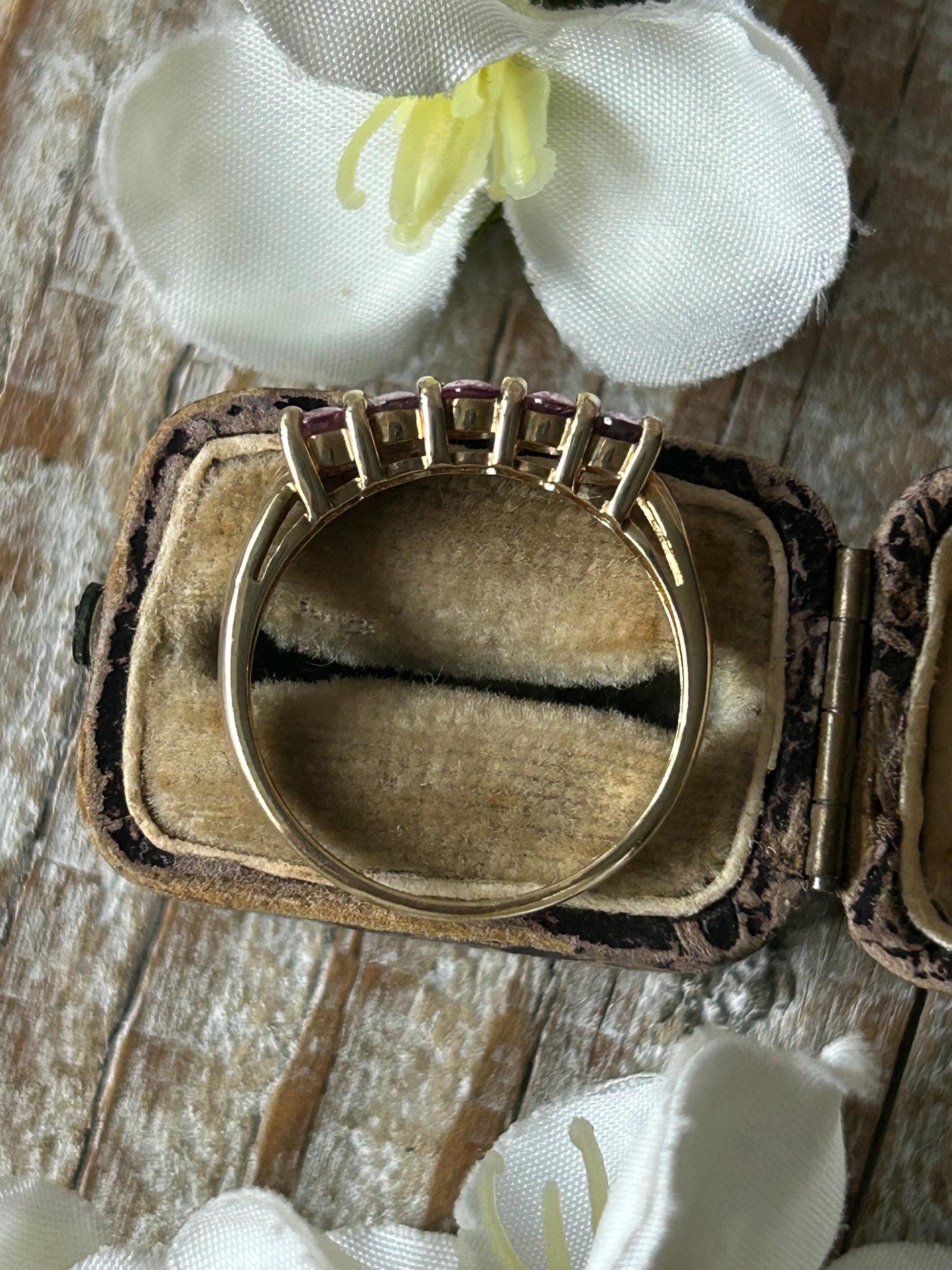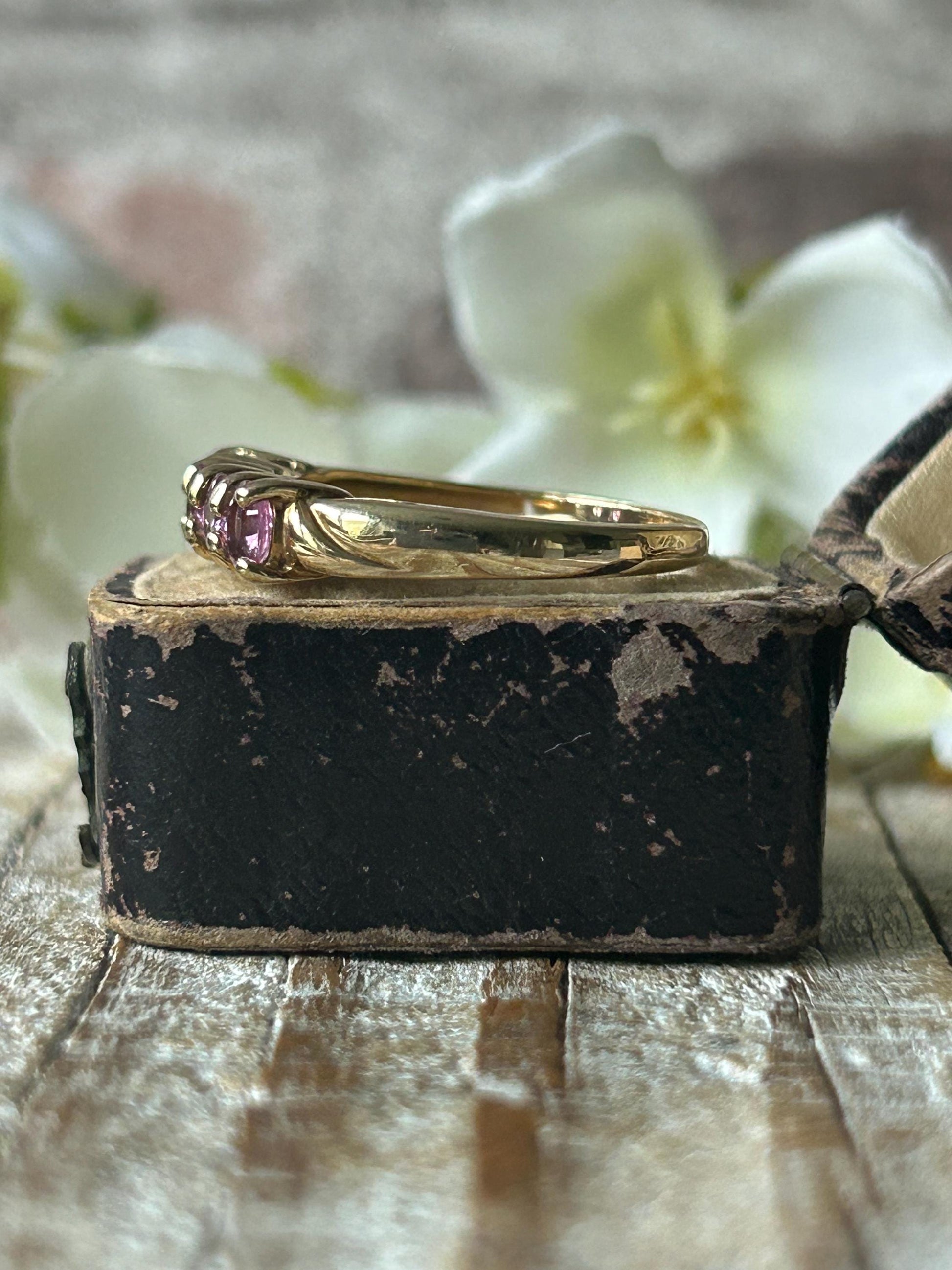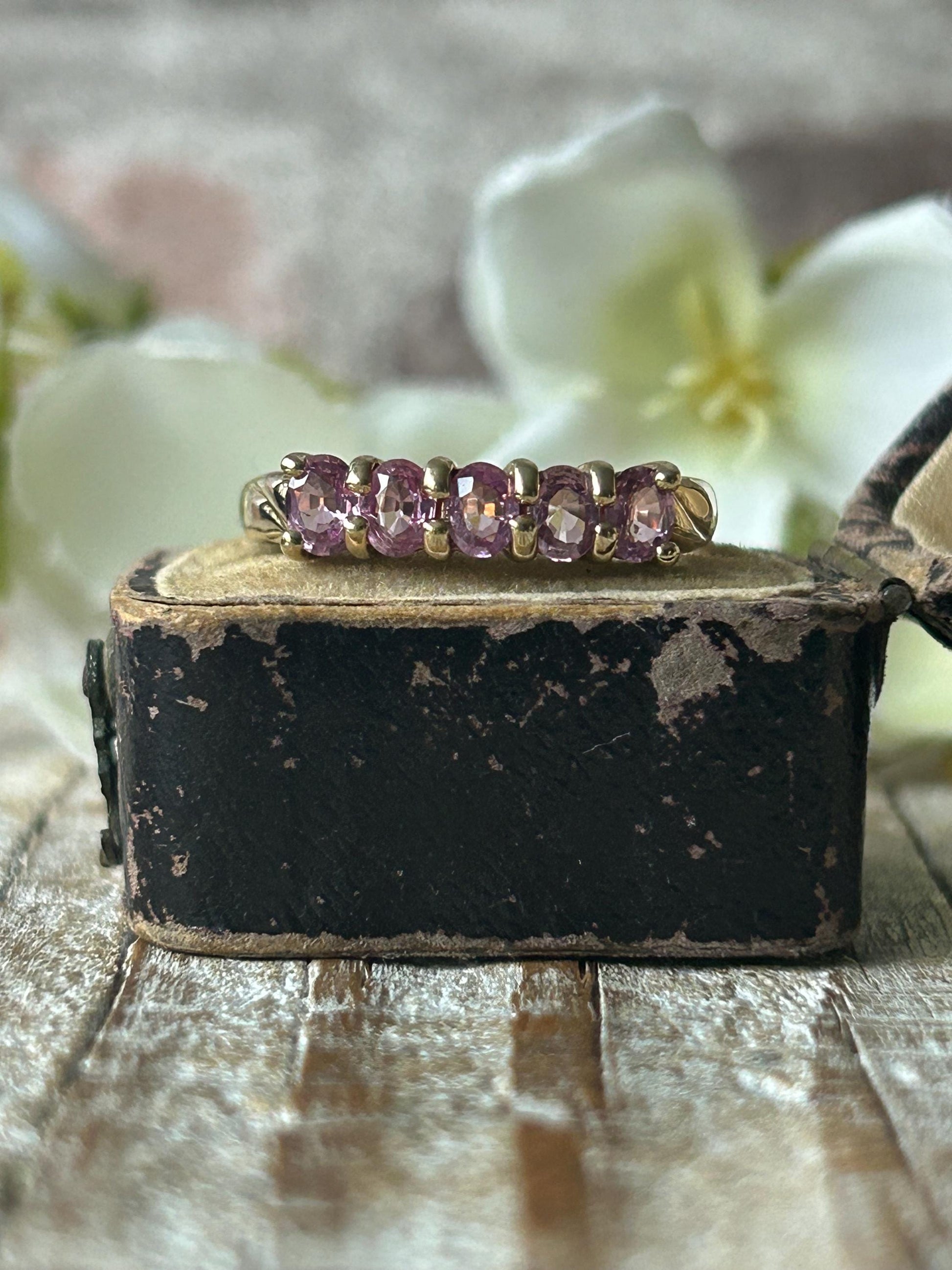 Vintage Pink Sapphire Five Stone Ring 9 Carat Yellow Gold