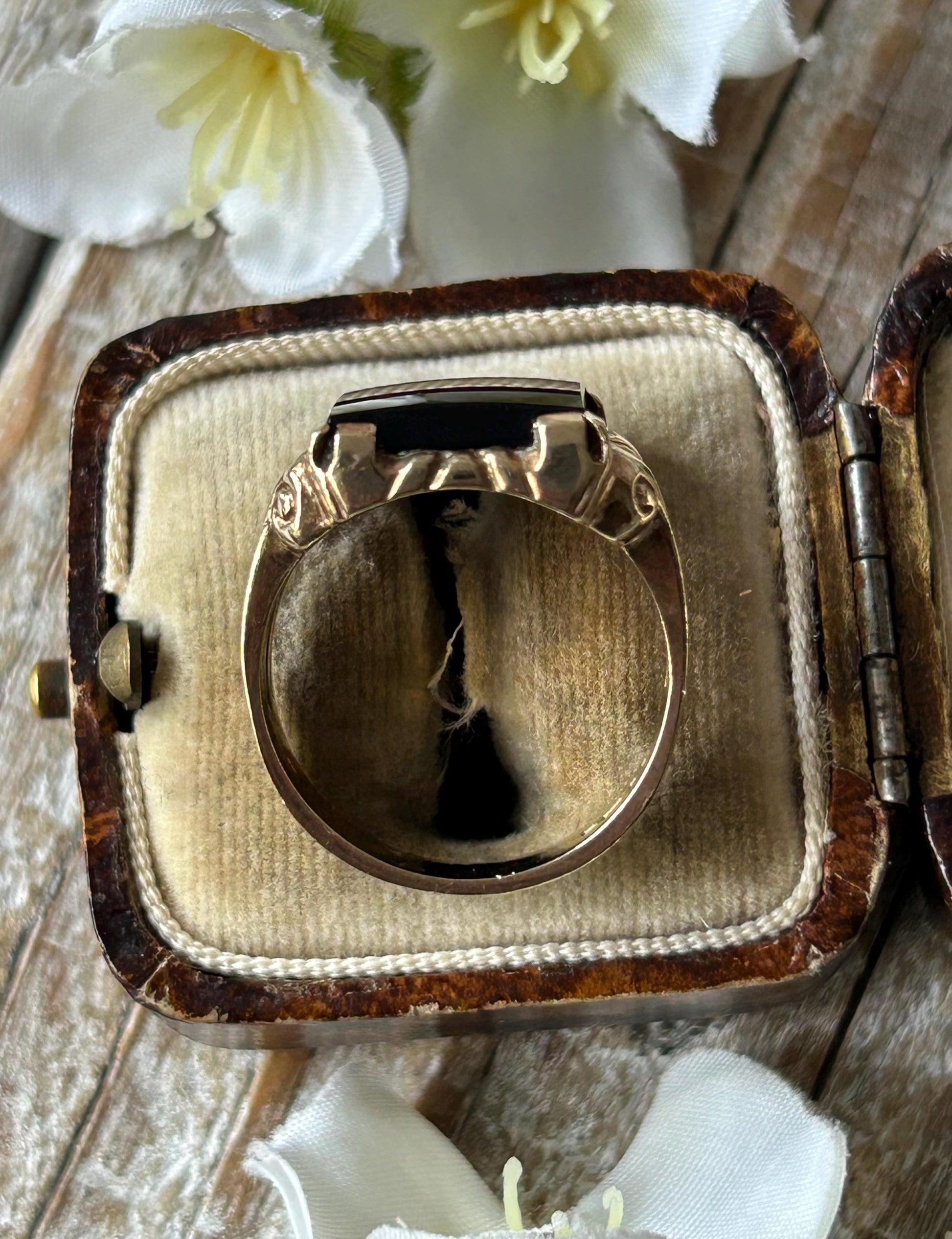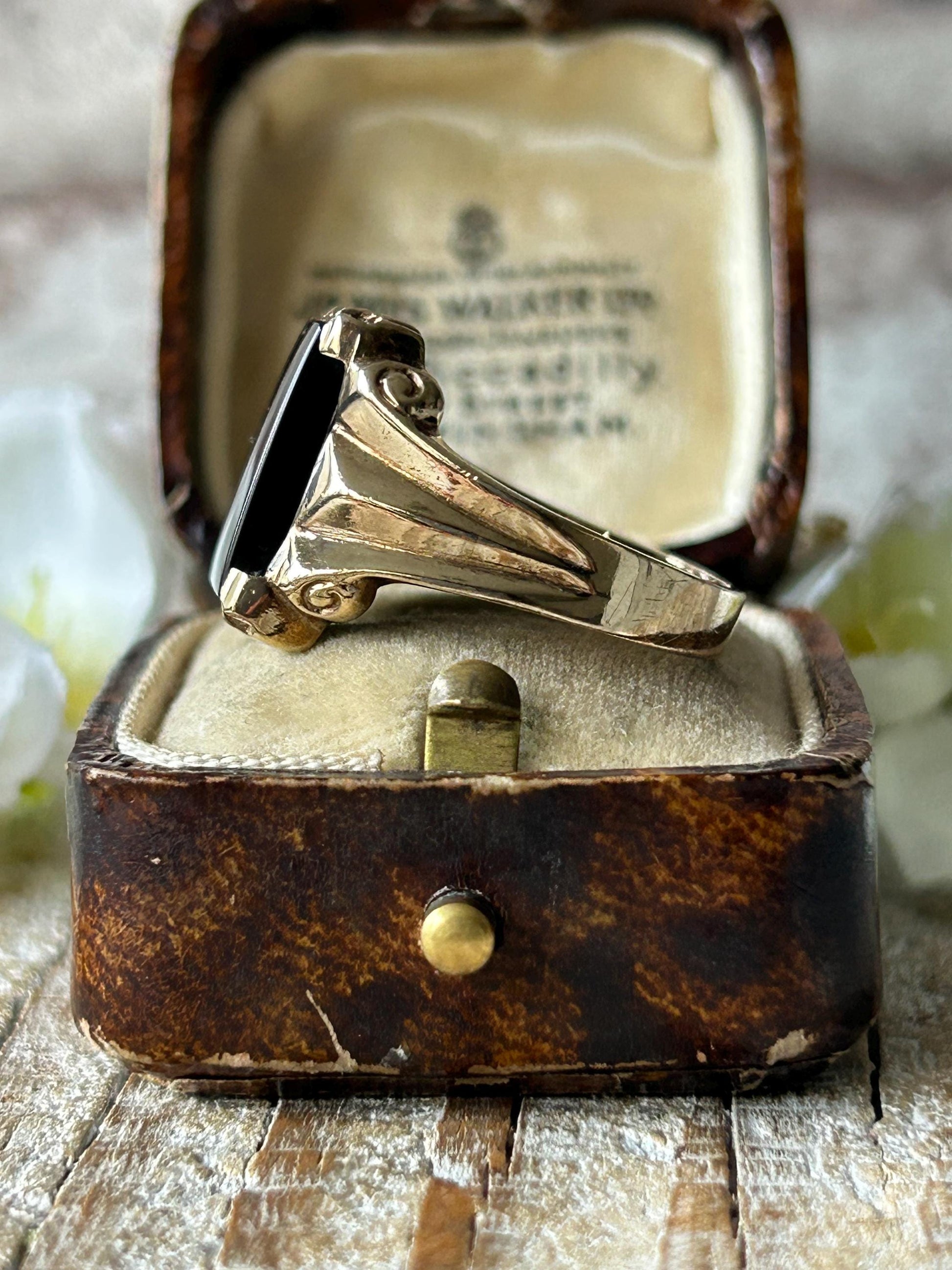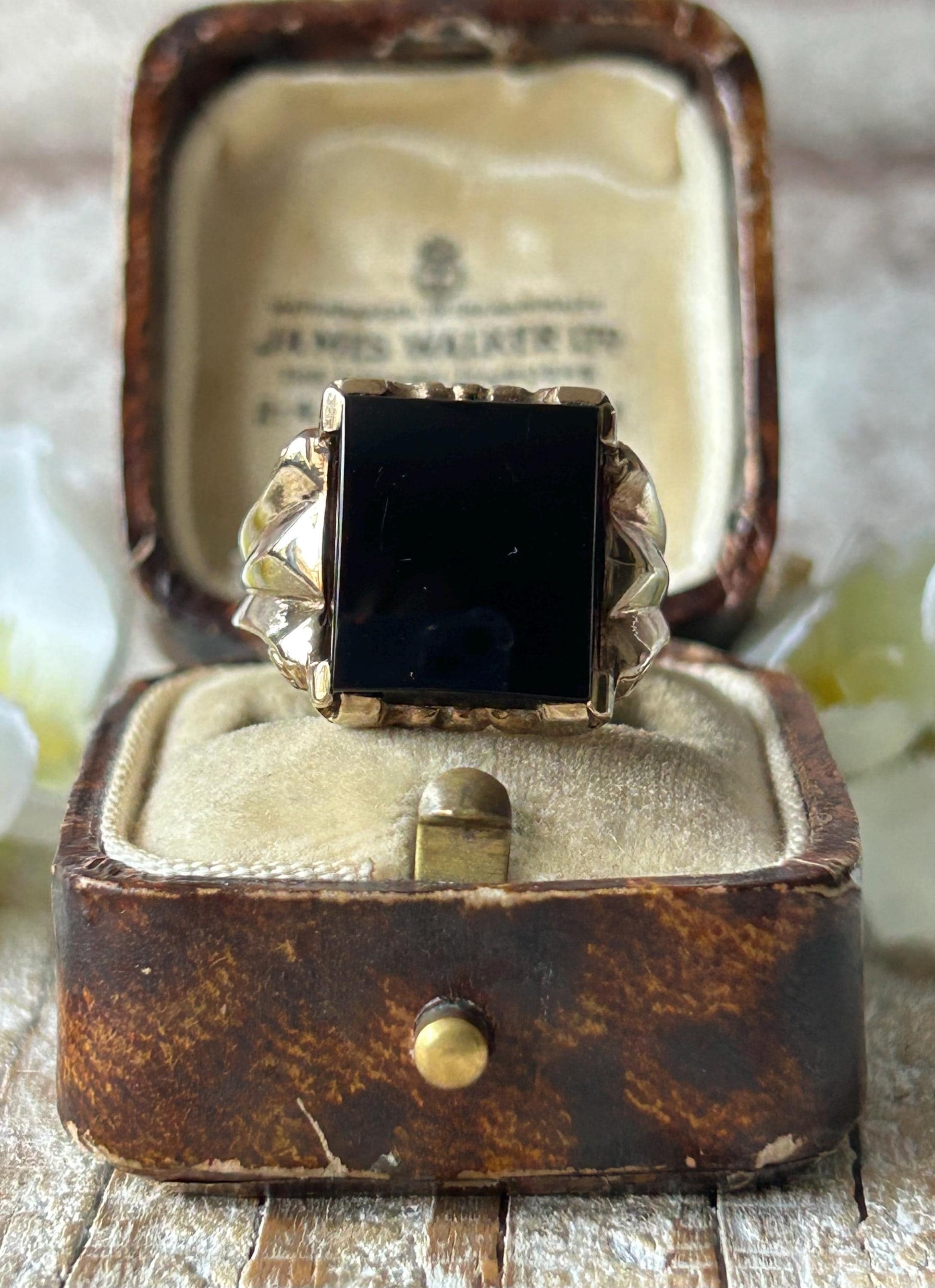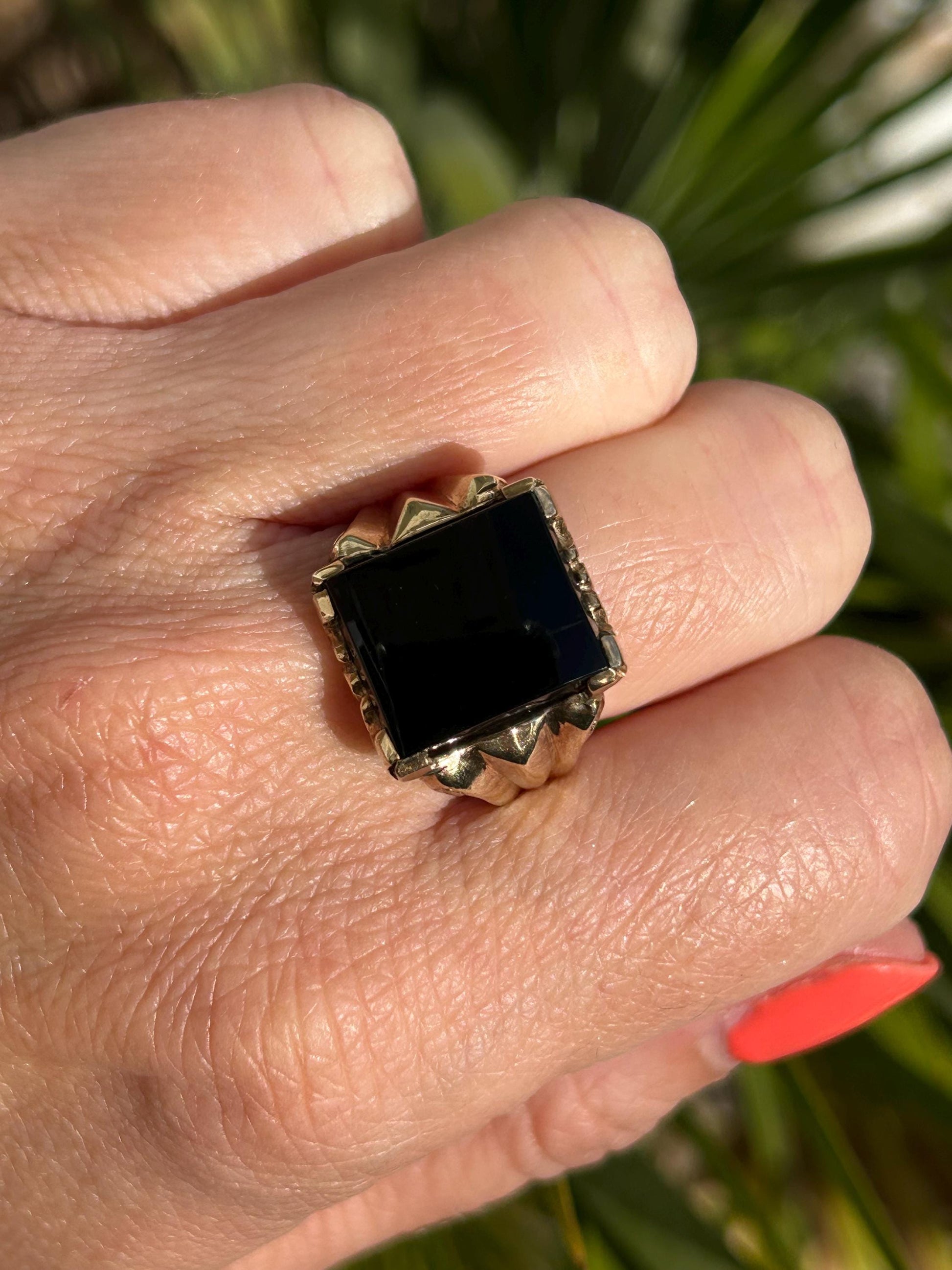 Vintage Rectangular Onyx Signet Ring 9 Carat Yellow Gold 1984